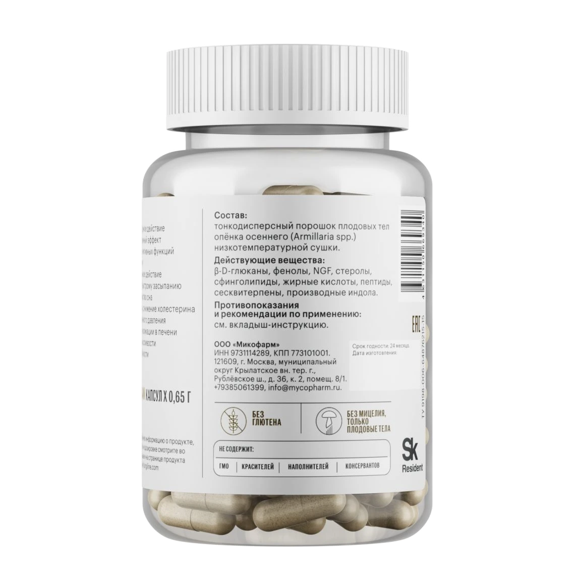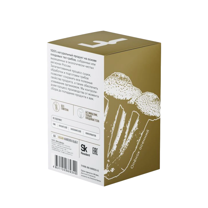 დაბალტემპერატურული გაშრობის მეთოდით გამომშრალი ველურად მზარდი Armillaria mellea-ის ნაყოფსხეულების ფხვნილი.