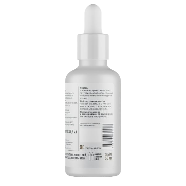 როგორც ეკოლოგიურად სუფთა გარემოში გაზრდილი ან კულტივირებული მრავალი სოკო, Inonotus obliquus სკლეროციუმებში აგროვებს მიკრო და მაკროელემენტების მთელ აუცილებელ სპექტრს. სოკოების რაციონში ჩართვა განსაკუთრებით მნიშვნელოვანია ქალაქურ გარემოში მცხოვრები ადამიანებისთვის, რომლებიც მუდმივ ოქსიდაციურ სტრესს აწყდებიან (დარღვეული ძილისა და სიფხიზლის ციკლები; კვების დისბალანსი და კვებითი ქცევის პრობლემები; ქრონიკული სტრესი, გარემოს არასასურველი ეკოლოგიური ფაქტორები; ფიზიკური დატვირთვის არარსებობა). ამიტომ სოკოები — თანამედროვე ეპოქის უნიკალური და უაღრესად პერსპექტიული პროდუქტია, რომელსაც შეუძლია დაფაროს თანამედროვე ადამიანის ნუტრიციული მოთხოვნილებების მთელი სპექტრი. გამოშვების ეს ფორმა წარმოადგენს ორმაგ ექსტრაქტს, რომელიც შემუშავებულია ბიოშეღწევადი ნაერთების რაოდენობის გასაზრდელად. ეს არის მაღალეფექტური მეთოდი სამკურნალო სოკოებიდან პოლისაქარიდების, ტრიტერპენების, ვიტამინებისა და სხვა სასარგებლო ნივთიერებების ექსტრაქციისთვის.