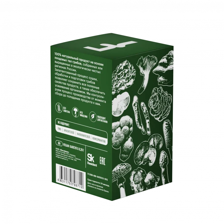პროდუქტის აღწერა: კომპლექსი შეიცავს თორმეტი სხვადასხვა სამკურნალო სოკოს უნიკალურ კომბინაციას, რომელიც ხელს უწყობს დაავადებების ფართო სპექტრის პრევენციას და მხარს უჭერს ორგანიზმს სტრესისა და სეზონური გაციებების პერიოდში.