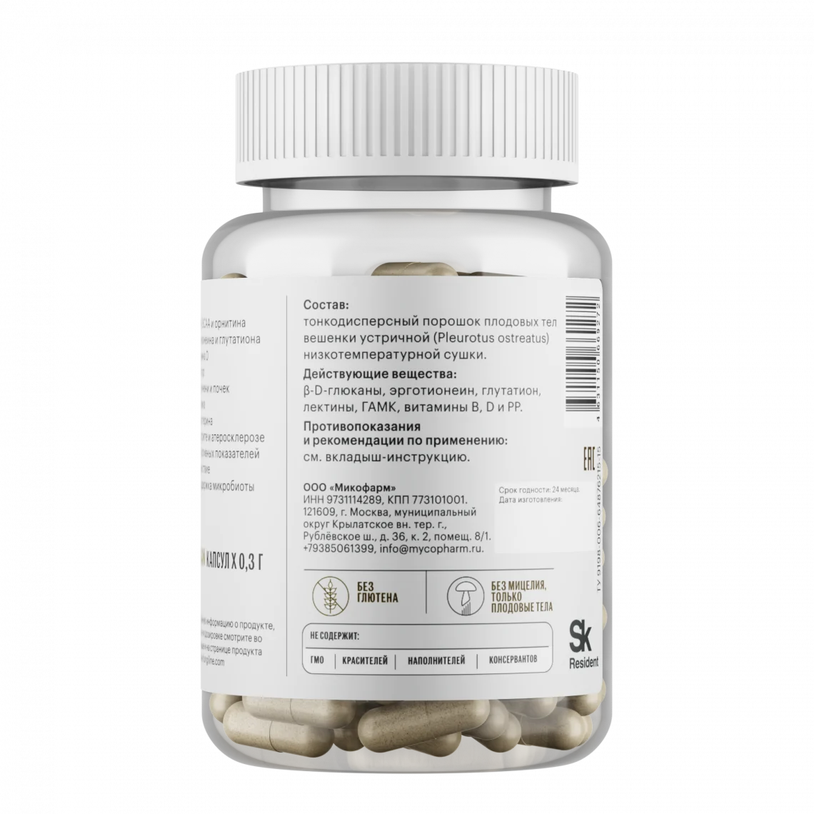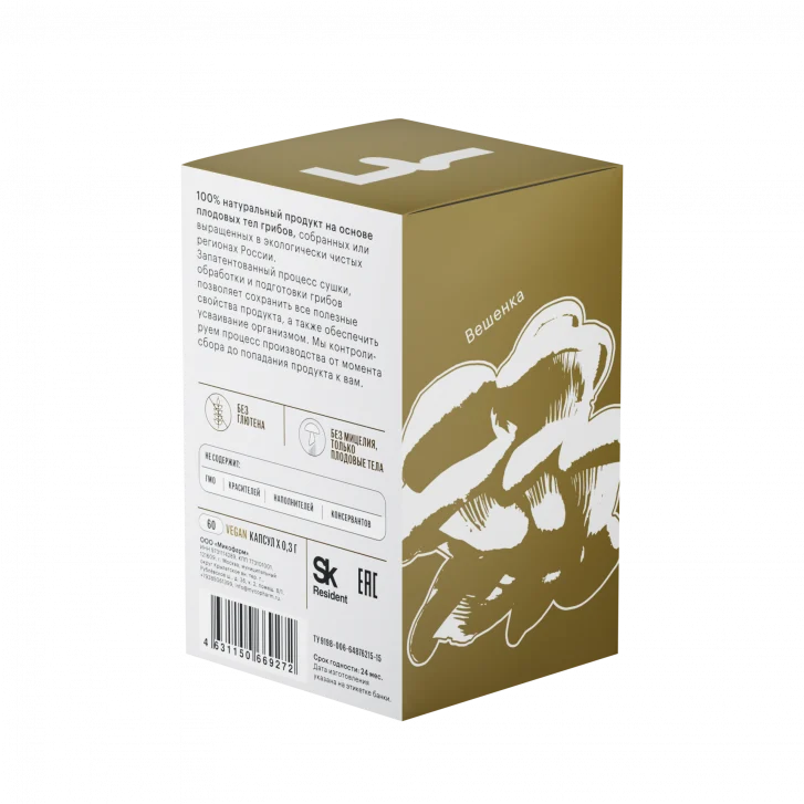 Основной компонент: порошок из плодовых тел вешенки (Pleurotus ostreatus)